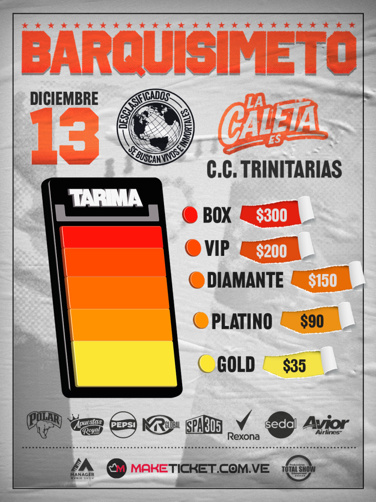Si quieres ser parte de esta experiencia en el Word Tour “Se Buscan Vivos o Inmortales” las entradas ya se encuentran a la venta en www.maketicket.com y en los stand ubicados en Ciudad Comercial Las Trinitarias y Ciudad Comercial Traki, no te pierdas de estar en “La Caleta” con los Hermanos Primera.